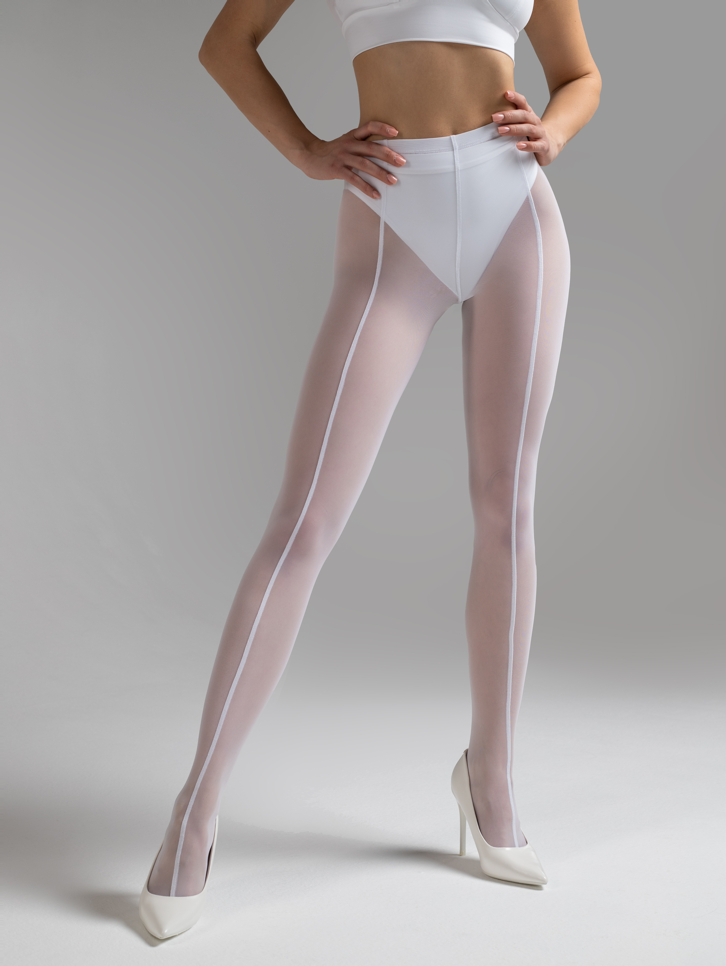Элегантные полупрозрачные лосины-колготки из эластичной нейлоновой сетки - фирменная новинка i-Style, которая превращает любой образ в утончённый и женственный. Главный акцент — идеально ровный вертикальный шов-стрелка по центру передней части каждой ноги. Он начинается от высокой талии и плавно доходит до мыска, визуально вытягивая силуэт, делая ноги бесконечно длинными и стройными. Это тот самый будуарный шик, который сейчас на пике популярности.